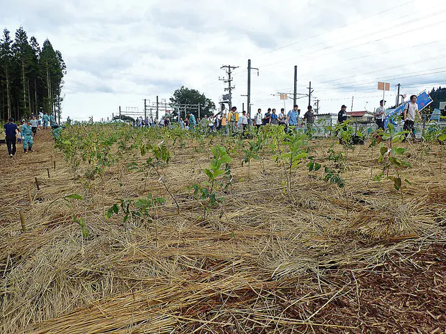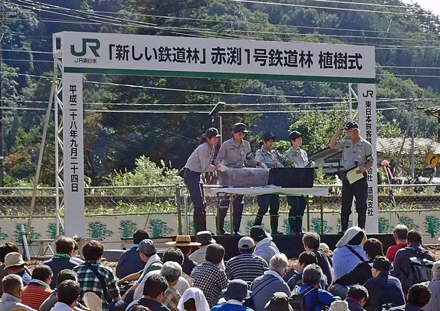 田沢湖線全線開通50周年という記念すべき年に、岩手県岩手郡雫石町の赤渕駅構内にある赤渕1号林で植樹式が開催され、約750名の参加者により約7,000本の苗木が植栽されました。