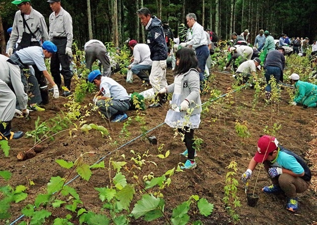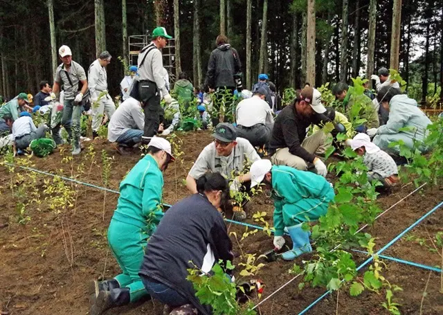 福島県猪苗代町の中山宿駅と上戸駅の間にある中山宿6号林で植樹式が開催され、約800人の参加者により、約7,000本の苗木が植栽されました。